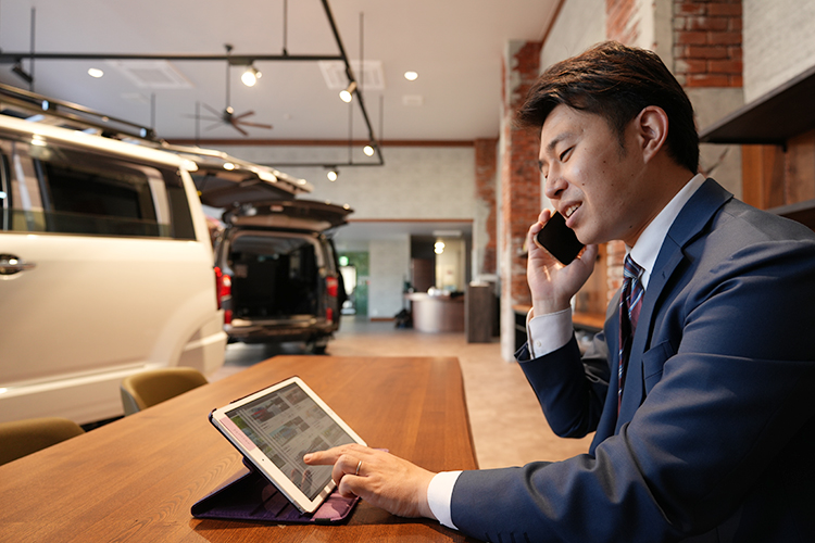 まずは、お客様の使用年数や家族構成の変化、ライフスタイル・現状の問題点等を丁寧にヒアリング。お客様の目線に立ち、クルマの販売を始めとする最適なカーライフプランをご提案します。また、クルマを販売した後も車検や点検などメンテナンスのご案内・クルマに関するアドバイス等を通して、お客様のカーライフをトータルでサポートしていきます。