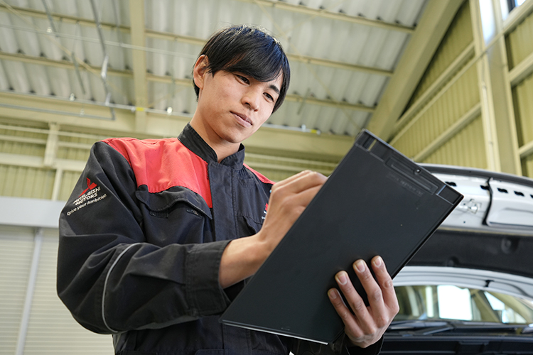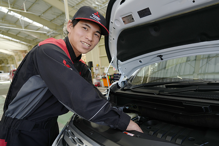 近年EV車が注目されているなか、国内EV車の先駆けでもある「I-MIVE」に興味を持ち、その車を整備したいと考え、三菱自動車への入社を視野に整備士になりました。その際、東海三菱には手厚い奨学金制度があることを知り、縁を感じ入社の決め手となりました。