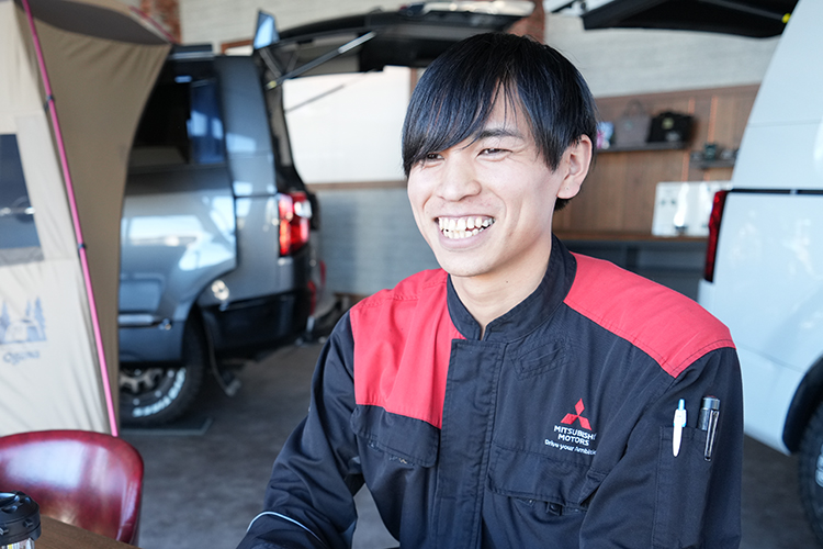 正直な話、入社二年目までは自身の技術力向上の為だけに、仕事に従事していました。ある日、デリカD:5にお乗りのお客様から「アクセルを踏んでも力がない」との入庫があり、私が整備を担当する事となりました。幸い、すぐに故障個所を見つけることが出来、解決に至りました。その際にお客様から安堵の表情で「ありがとう」とひと言頂けたことが、私の仕事への考えを180度変え、誰か困っている人の為にこの技術はあるのだと考えさせられたことを、今でも鮮明に覚えています。